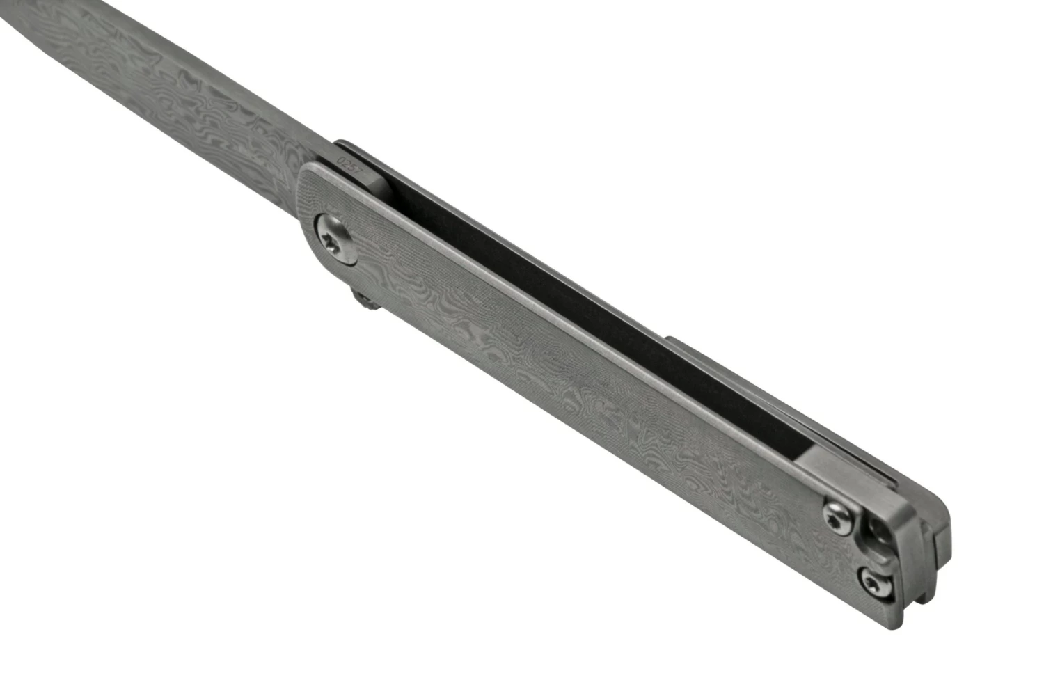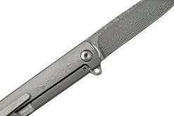 El Böker Plus Gemma Damascus es un elegante cuchillo de caballero. Debido a su tamaño compacto, tiene un aspecto muy agradable. La hoja se abre con el flipper y, a pesar de su tamaño, es fácil con los rodamientos de bolas. Una vez abierta, la hoja se bloquea mediante un sólido cierre de marco, llamado framelock. Así, el cuchillo nunca se cerrará accidentalmente, ni siquiera durante las tareas de corte más exigentes. El cuchillo está muy afilado en el momento de la entrega.