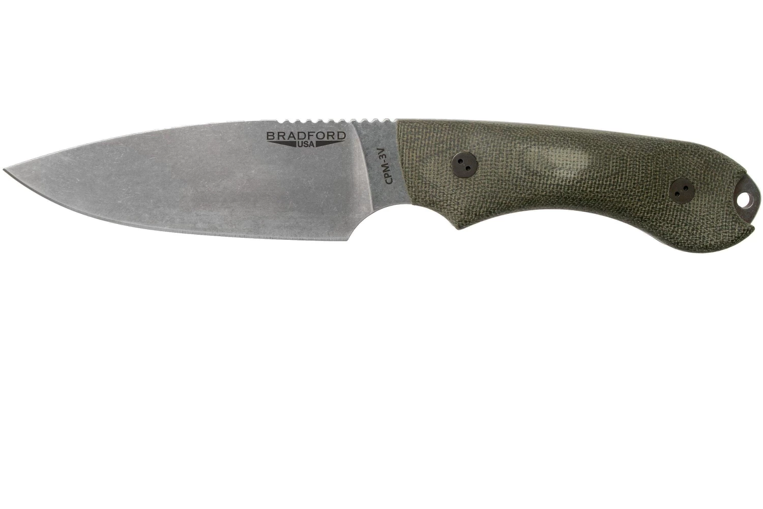 Bradford Guardian 4, 3D OD Green Micarta Guardian 4 CPM 3V, Full Flat Stonewashed 4FH-102-3V