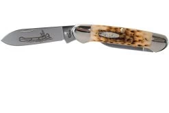 La Case Canoe es una navaja tradicional. Elegante e increíblemente práctica. El nombre proviene del diseño de la canoa. Cuando se mira el mango desde el lado, se notan inmediatamente las similitudes. En este caso, la navaja se ha mejorado con dos hojas de forma similar. La única diferencia es su tamaño. Al fin y al cabo, la hoja grande mide 6,5 cm y la pequeña 5,0 cm. Las protuberancias a ambos lados que lo hacen parecer una canoa tienen en realidad un propósito. Aseguran que la parte trasera afilada de la hoja no se enganche en el bolsillo. ¡Muy inteligente!