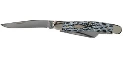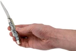 La Case Medium Stockman es un verdadero clásico en el mundo de las navajas. Este modelo es casi tan antiguo como toda la categoría de los Traditionals. Esta Case Stockman es una encarnación muy pura de este modelo clásico. Tiene tres hojas: una hoja de punta de clip como hoja principal, una hoja sheepsfoot de 5,0 cm y, por supuesto, la casi indispensable hoja para Stockman, la Spey-blade. Es una spearpoint con una especie de punta roma. Originalmente este tipo de forma se utilizaba para destripar la caza.