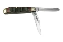 El Cold Steel Outdoorsman 35AP es un robusto cuchillo para exteriores. Lo más destacable del Cold Steel Outdoorsman es la combinación del diseño japonés con elementos modernos. El mango es japonés. Famoso por los cuchillos Cold Steel tanto. La hoja es en parte japonesa, pero sobre todo especial. En términos de acero, Cold Steel seleccionó una construcción San Mai. Un núcleo hecho de acero duro para cuchillos VG10, flanqueado por capas de acero más blando para mayor solidez. Se puede ver claramente la línea de laminación entre estos dos tipos de acero.