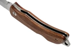Esta navaja es polivalente y es ideal para uso en exteriores. Este modelo es ligeramente más compacto que el Swede 10. Nadie se podrá sentir ofendido por este cuchillo. El cierre trasero y la hoja de acero Sandvik 12C27 de primera calidad ofrecen la solidez y la fiabilidad que se espera de un cuchillo de este tipo. La hoja está dotada de prácticas ranuras para un buen agarre. No es muy sofisticada, pero es perfecta para el uso diario. La hoja no se puede abrir con una sola mano, por lo que también se puede utilizar en paÃses donde la legislación lo prohÃbe. Y en la práctica esto no supone una desventaja.