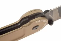 Cuchillos plegables «full size», aptos para el uso profesional de los militares y las fuerzas del orden. Mango clásico provisto con un puente-clip. Hoja puntiaguda «Tanto». Longitud de la hoja: 8,5 cm Revestimiento estilo desierto.