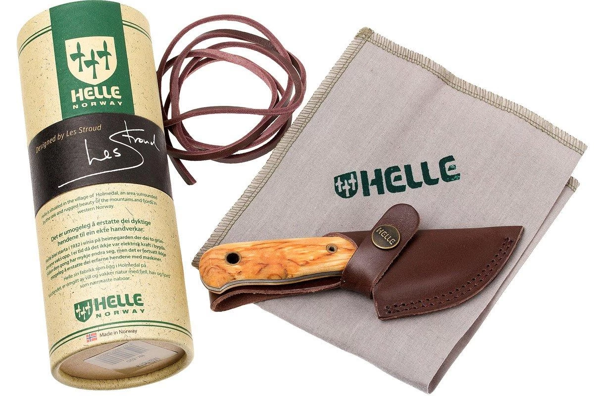 El Helle Mândra es un cuchillo de cuello, diseñado en colaboración con Les Stroud. Él es conocido por el programa de televisión Survivor Man. El prototipo del Mândra fue probado por Les Stroud en RumanÃa durante una grabación de su programa de televisión. El diseño del cuchillo se perfeccionó según sus comentarios y opiniones. El nombre de Mândra proviene de la cima de una montaña en RumanÃa donde se encontraba Les Stroud durante la grabación del programa. Mândra significa orgulloso. Un nombre apropiado porque Helle puede estar muy orgulloso de los resultados de esta exitosa colaboración con Les Stroud.