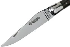 Esta Laguiole en Aubrac 12cm navaja clásica es una navaja clásica de Laguiole. El lomo del mango está realzado con un impresionante trabajo de limado. La hoja está hecha de acero inoxidable Sandvik 12C27MOD. Tanto los cabezales como la hoja tienen un acabado ligeramente mate. De este modo, el cuchillo no se verá afectado por las huellas dactilares sucias tan fácilmente. El lateral del mango presenta la característica cruz de pastor de Laguiole.
