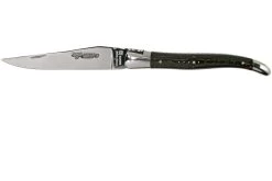 Esta Laguiole en Aubrac 12cm navaja clásica es una navaja clásica de Laguiole. El lomo del mango está realzado con un impresionante trabajo de limado. La hoja está hecha de acero inoxidable Sandvik 12C27MOD. Tanto los cabezales como la hoja tienen un acabado ligeramente mate. De este modo, el cuchillo no se verá afectado por las huellas dactilares sucias tan fácilmente. El lateral del mango presenta la característica cruz de pastor de Laguiole.