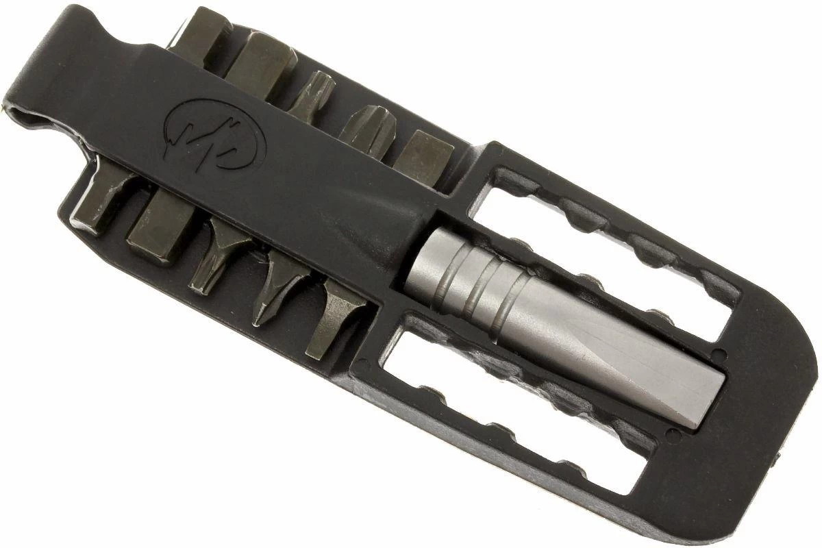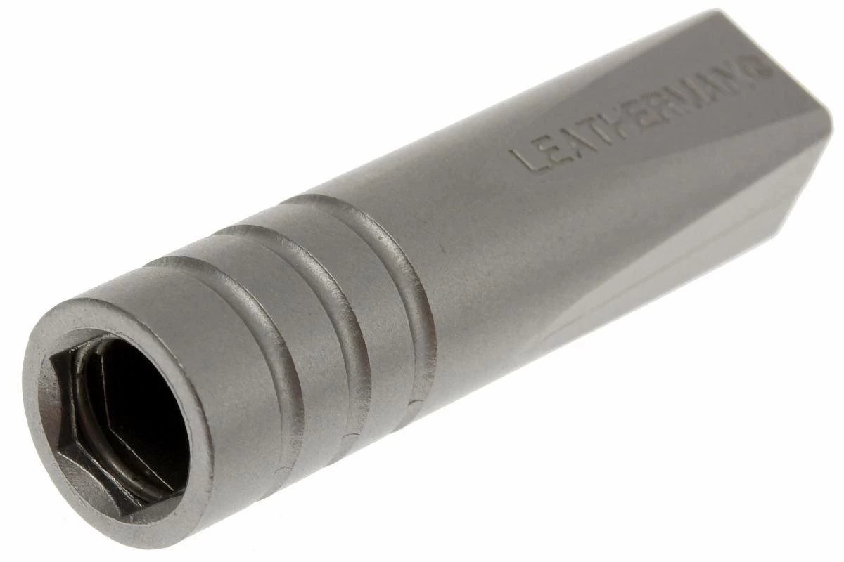 Con este kit de brocas se añaden 10 herramientas adicionales a varias Leatherman que no están diseñadas de forma estándar para un kit de brocas. Se desliza la extensión sobre el destornillador de estrella y se puede utilizar una de las cinco brocas. Además, obviamente también las brocas de los juegos de brocas más extensos caben en esta herramienta. También caben las puntas hexagonales estándar de tu destornillador eléctrico.