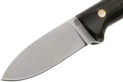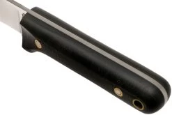 El LT Wright Next Gen es un cuchillo bushcraft moderno y popular, fabricado en Estados Unidos. En cuanto a las formas, es un poco como el arquetípico cuchillo bushcraft: simple pero bueno. El mango parece sencillo, y lo es. Al fin y al cabo, lo sencillo funciona. Tienes suficiente agarre sobre este «palo de escoba», independientemente de cómo lo sujetes. Ya sea para hacer cortes, cortar plumas o cocinar. Los recortes profundos en la parte delantera del mango y en el lateral son perfectos para el pulgar. Es ideal durante un movimiento de corte de «palanca de pecho», o al destripar la caza. De este modo, siempre estarás seguro al 100% de cómo sujetar el cuchillo. Incluso en la oscuridad.