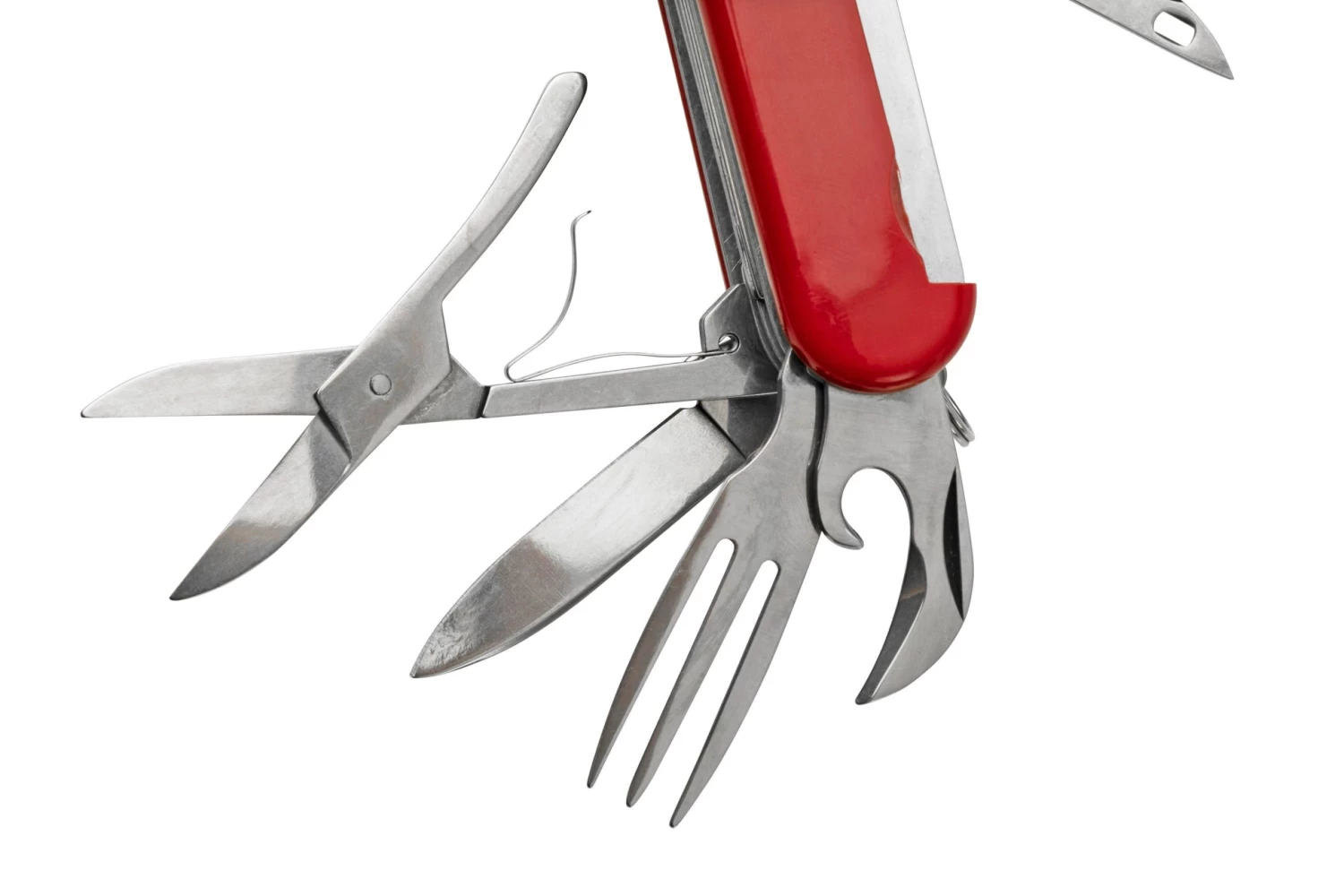 | Herramientas | lezna, abridor de botellas, sacacorchos, Tenedor, cuchillo, alicates, sierra, tijeras, rasqueta, destornillador, destornillador pequeño, abrelatas, destornillador de estrella |
