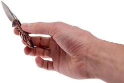 La Rike Mini Hummingbird es una pequeña navaja, fabricada con materiales fantásticos. Rike Knife se ha superado realmente con esta Hummingbird. La hoja está hecha de acero de damasco. Inoxidable y sorprendente. La acción del flipper no tiene precedentes para una navaja tan pequeña. El flipper abre la hoja con la máxima rapidez. Es realmente fantástico para un cuchillo tan minúsculo.