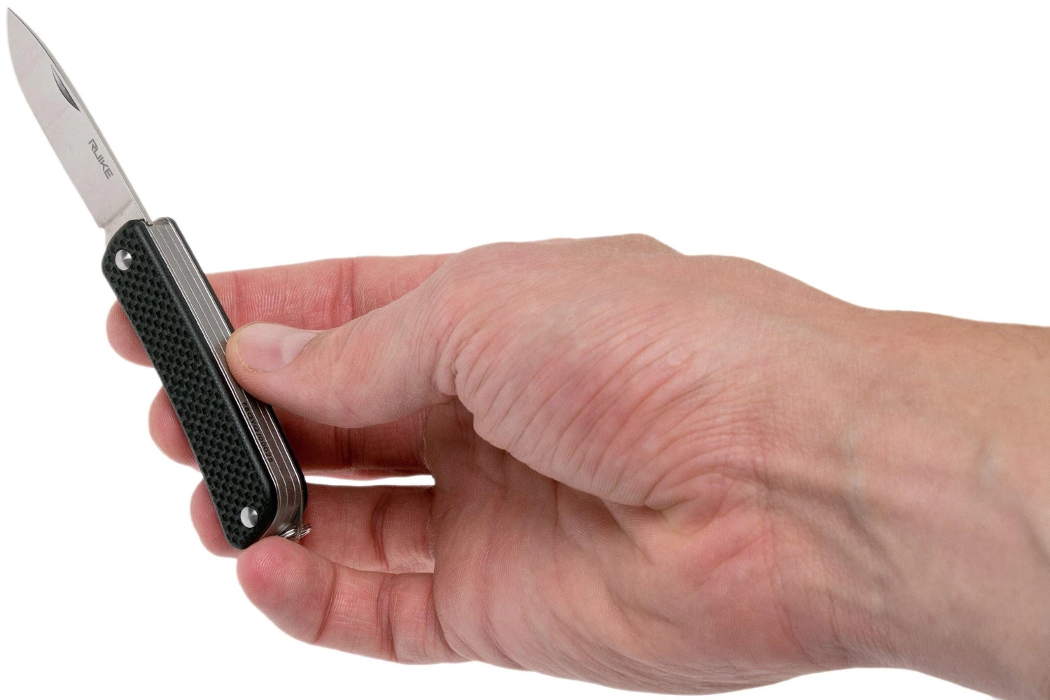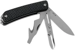 La Ruike S31 es una práctica navaja tipo llavero. Es lo suficientemente compacta como para colgarla fácilmente de tu manojo de llaves y lo suficientemente grande como para ser funcional. Únicamente cuando se tiene cerca este tipo de navaja llavero se nota la frecuencia con la que resulta útil. Cuando se abren cartas y cajas, o se cortan correas de sujeción. Pero también al pelar una manzana o quitar una etiqueta de una camisa. Además de la hoja, esta navaja está equipada con un destornillador, un gancho de corte, un abrebotellas y unas tijeras.