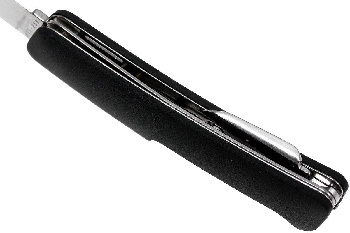 La Swiza D02 es una navaja contemporánea inspirada en las clásicas navajas suizas. Lo primero que notarás es el diseño moderno y ergonómico del cuchillo. La innovación es evidente cuando se mira el bloqueo. El cuchillo se desbloquea presionando el logotipo en el mango. Swiza también ha tenido en cuenta a los usuarios zurdos con un recorte en la hoja que puede utilizarse desde ambos lados.
