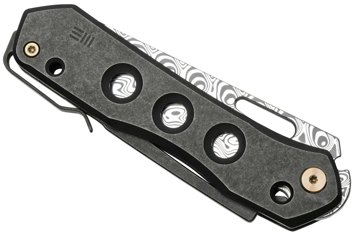 WE Knife Vision R 21031-DS1 Black Titanium, Hakkapella Damasteel Navaja, Diseño Snecx